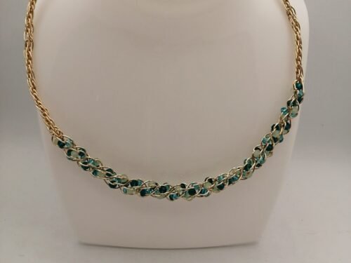 68,00 € Le prix initial était : 68,00 €.54,40 €Le prix actuel est : 54,40 €.Un Bijou Unique et Élégant Découvrez ce sublime collier et bracelet, soigneusement réalisés à la main selon la technique traditionnelle de tricotage viking. Confectionné avec des fils d’aluminium de plusieurs tons de bleu, ce bijou se distingue par son design raffiné et sa touche d’élégance intemporelle. Au centre du collier, un délicat morceau de perles…