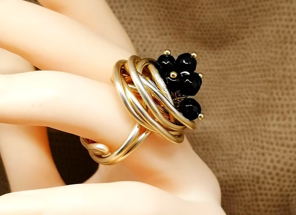 Bague Doré avec Pierres Onyx