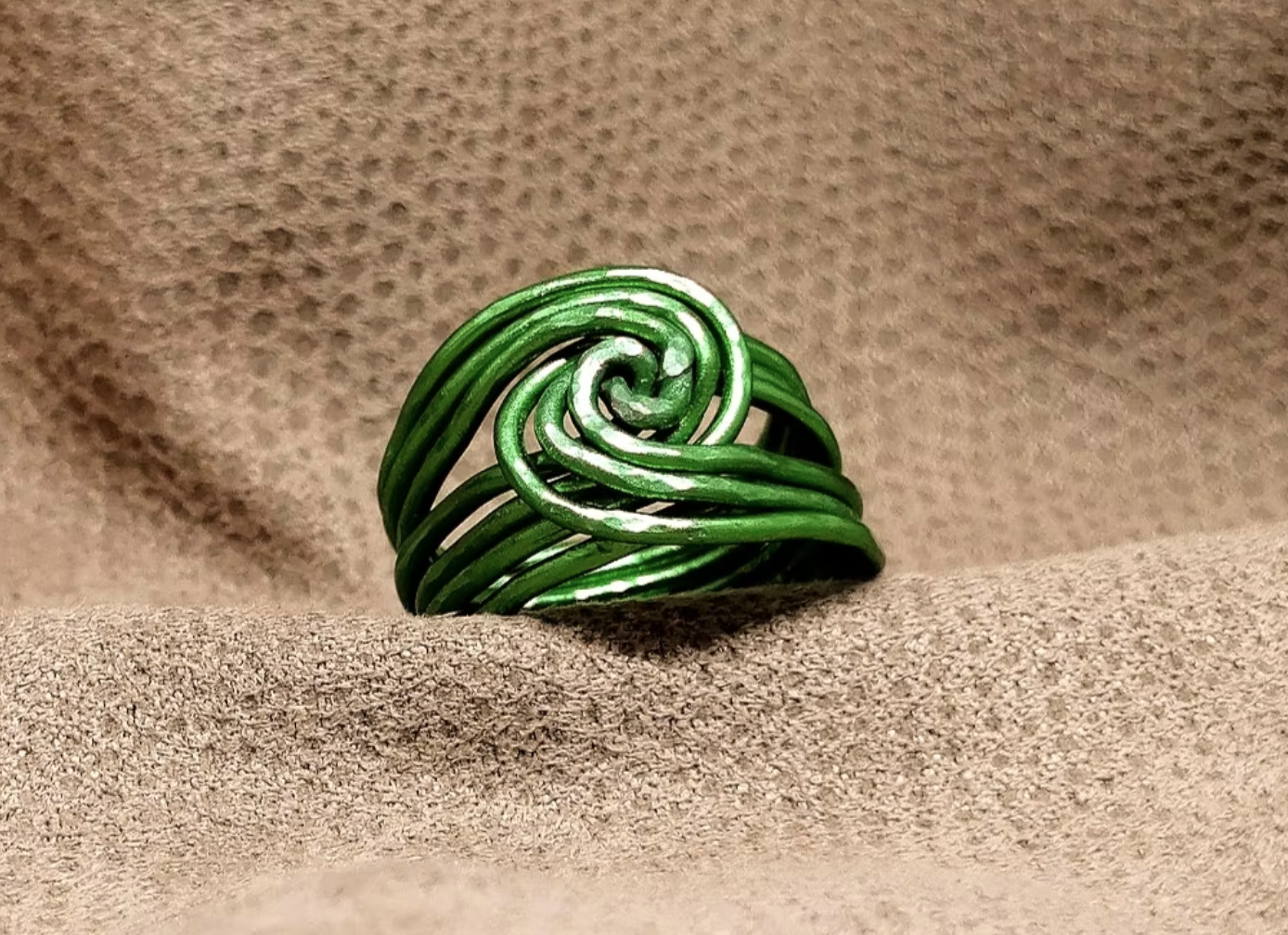 Cette bague ne se contente pas d’être seulement belle ; elle est également conçue pour durer. Chaque pièce est soigneusement fabriquée à la main pour garantir l’excellence artisanale et une attention au détail impeccable. Le fil d’aluminium martelé donne à la bague une texture unique qui reflète la lumière de manière délicate, ajoutant une touche supplémentaire d’élégance. C’est une pièce qui transcende les tendances et garantit une qualité que vous apprécierez pour les années à venir.