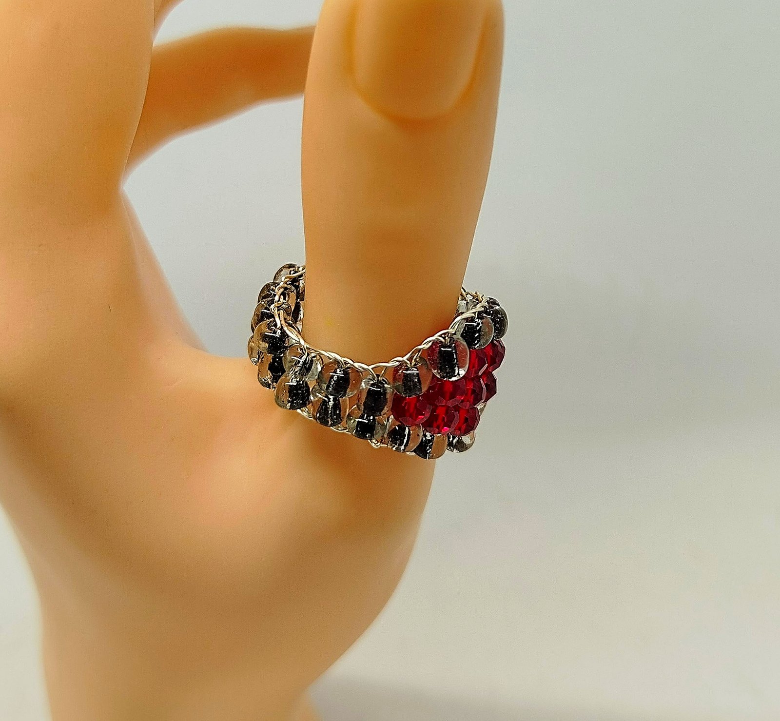Mettez en valeur votre manucure avec cette bague unique et soigneusement conçue. Façonnée à la main, elle combine harmonieusement des petites perles de deux couleurs pour un look délicat, mais captivant. Le design minimaliste permet de l’associer à différents styles, de l’élégance classique à une allure moderne.