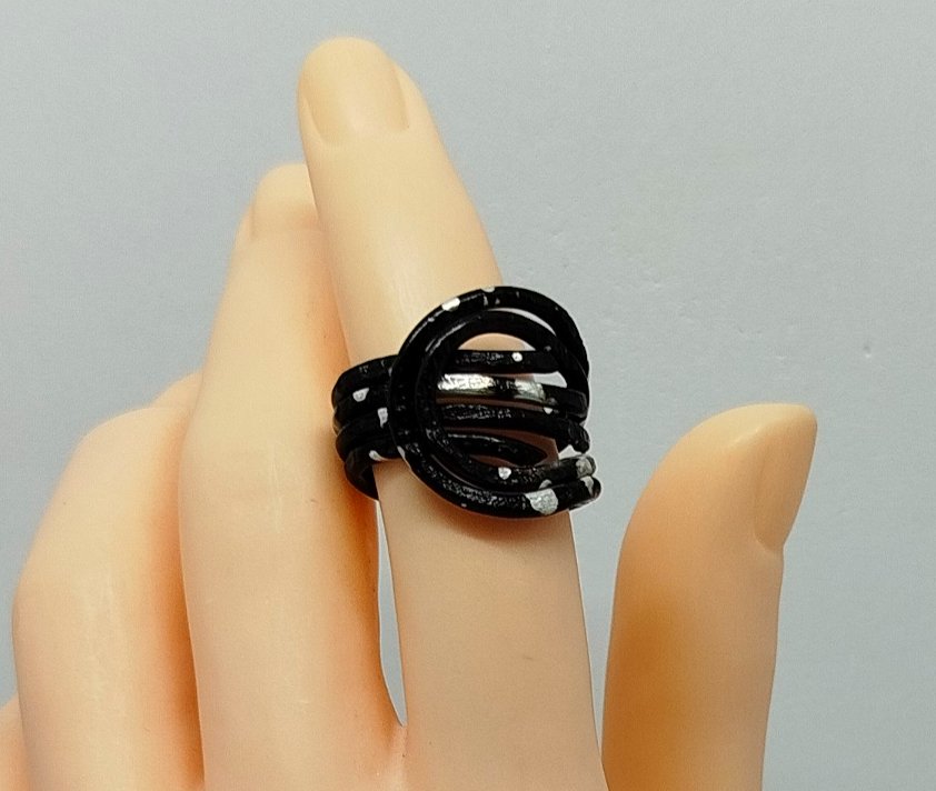 Découvrez la Bague Griffe, une création qui ne passe pas inaperçue. Avec son design unique en forme de griffe, cette bague est bien plus qu’un simple accessoire. Fabriquée avec du fil d’aluminium noir moucheté, elle incarne à la fois modernité et originalité.