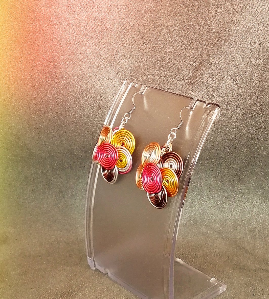 Confectionnées en fil aluminium multicolore, ces boucles d’oreilles mesurent 3 cm de diamètre et sont extrêmement légères. Elles garantissent un confort optimal tout au long de la journée tout en préservant leur durabilité. Les crochets argentés sans nickel assurent qu’elles conviennent aux peaux sensibles, ajoutant une dimension pratique à leur élégance.