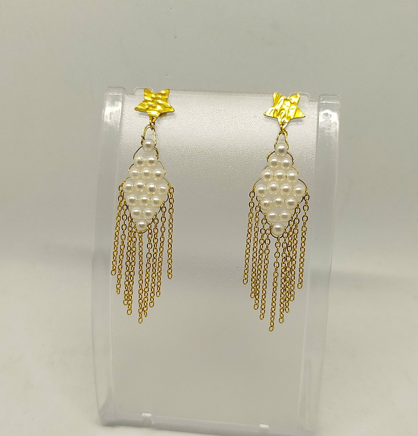 Boucles D’oreilles En Perles Avec Chaînes Élégantes
