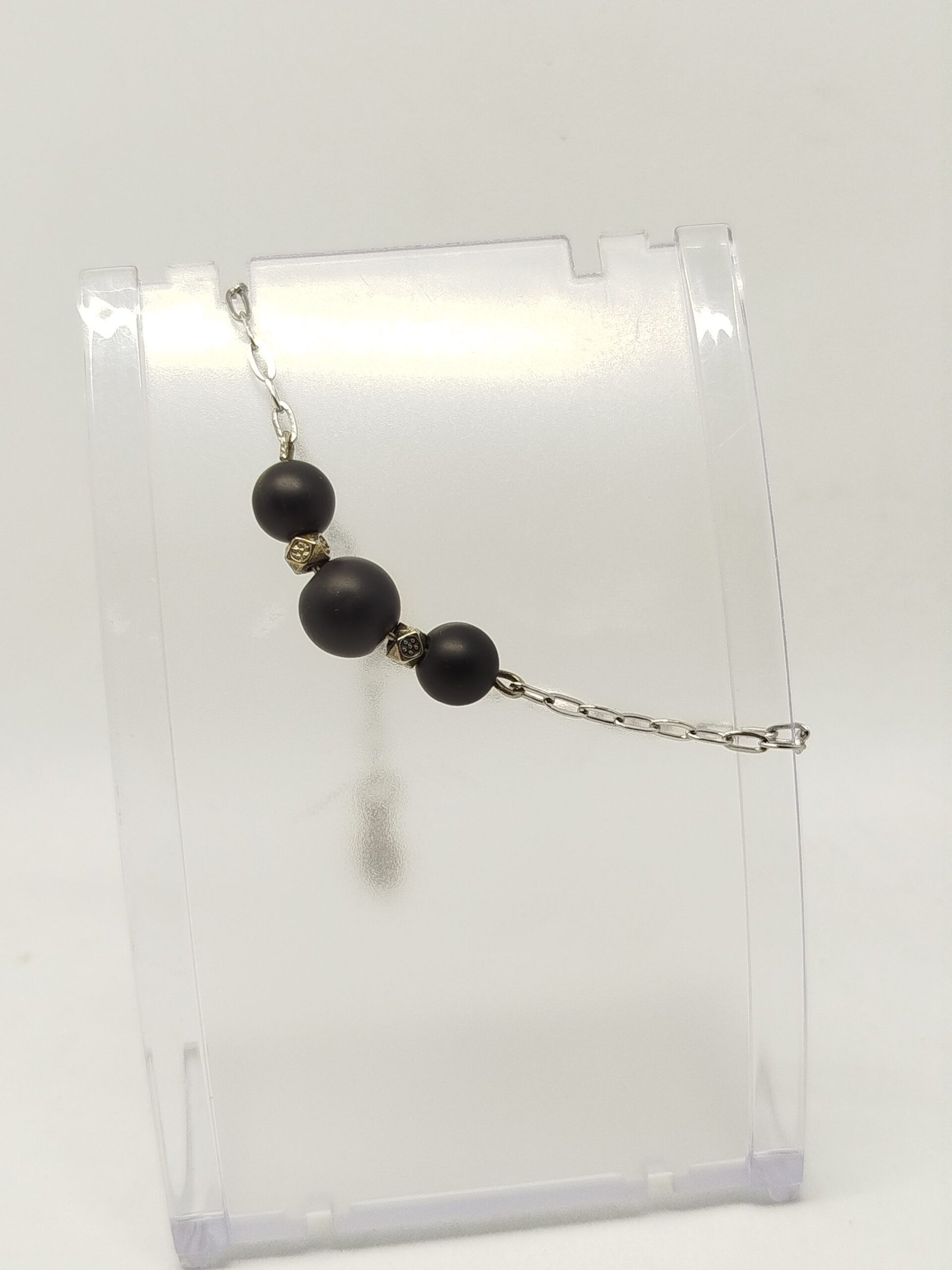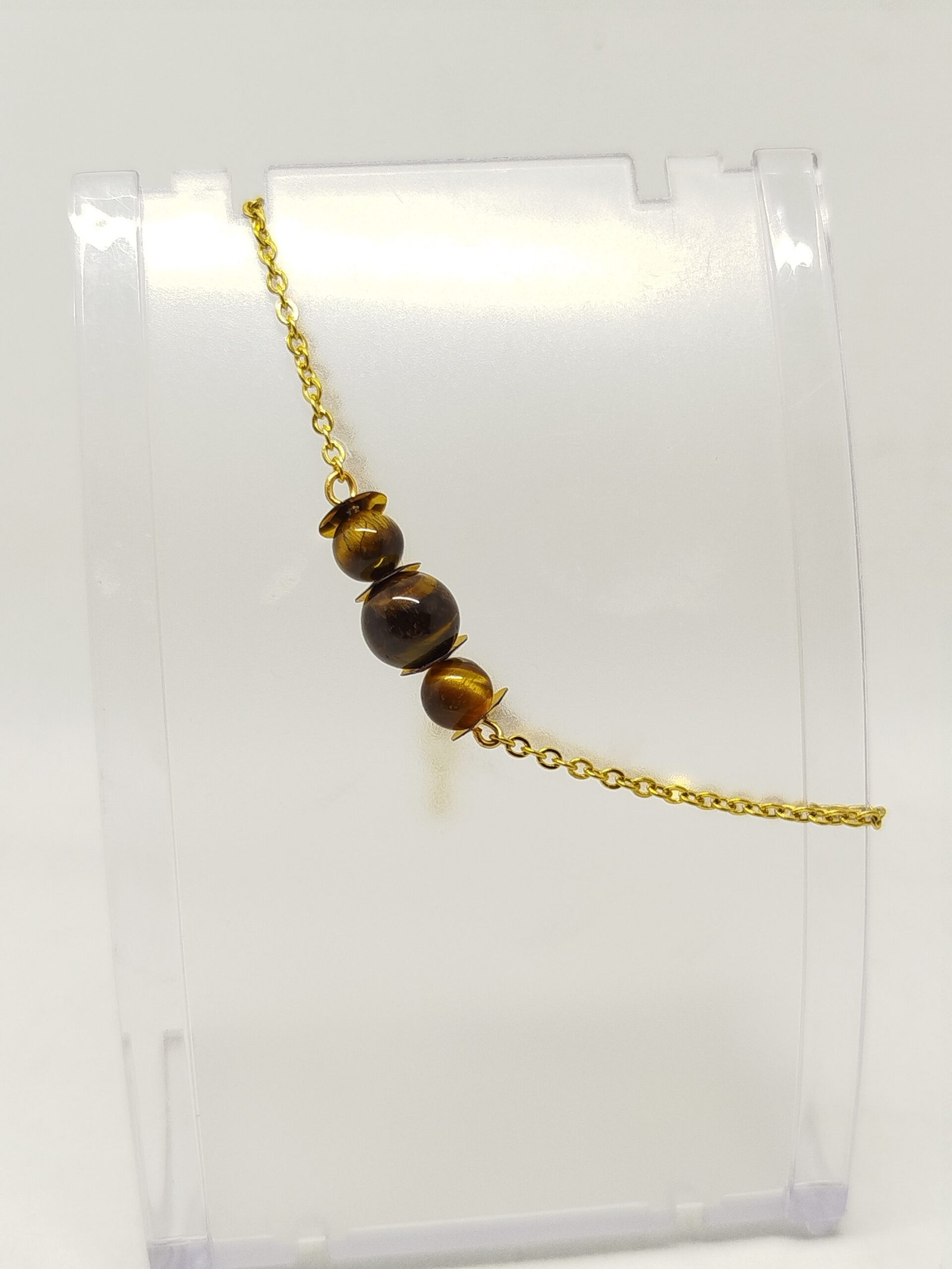 Accessoirisez votre look et ajoutez une touche de sophistication avec ce magnifique bracelet. Confectionné avec trois belles pierres naturelles, il est associé à une chaîne à maillons délicate en acier inoxydable, disponible dans une finition dorée ou argentée. Ce bracelet est conçu pour s’adapter parfaitement à votre poignet, mesurant 18 cm de longueur et équipé d’un fermoir mousqueton avec une petite extension. Impeccablement chic, il rehausse votre tenue avec élégance et finesse.