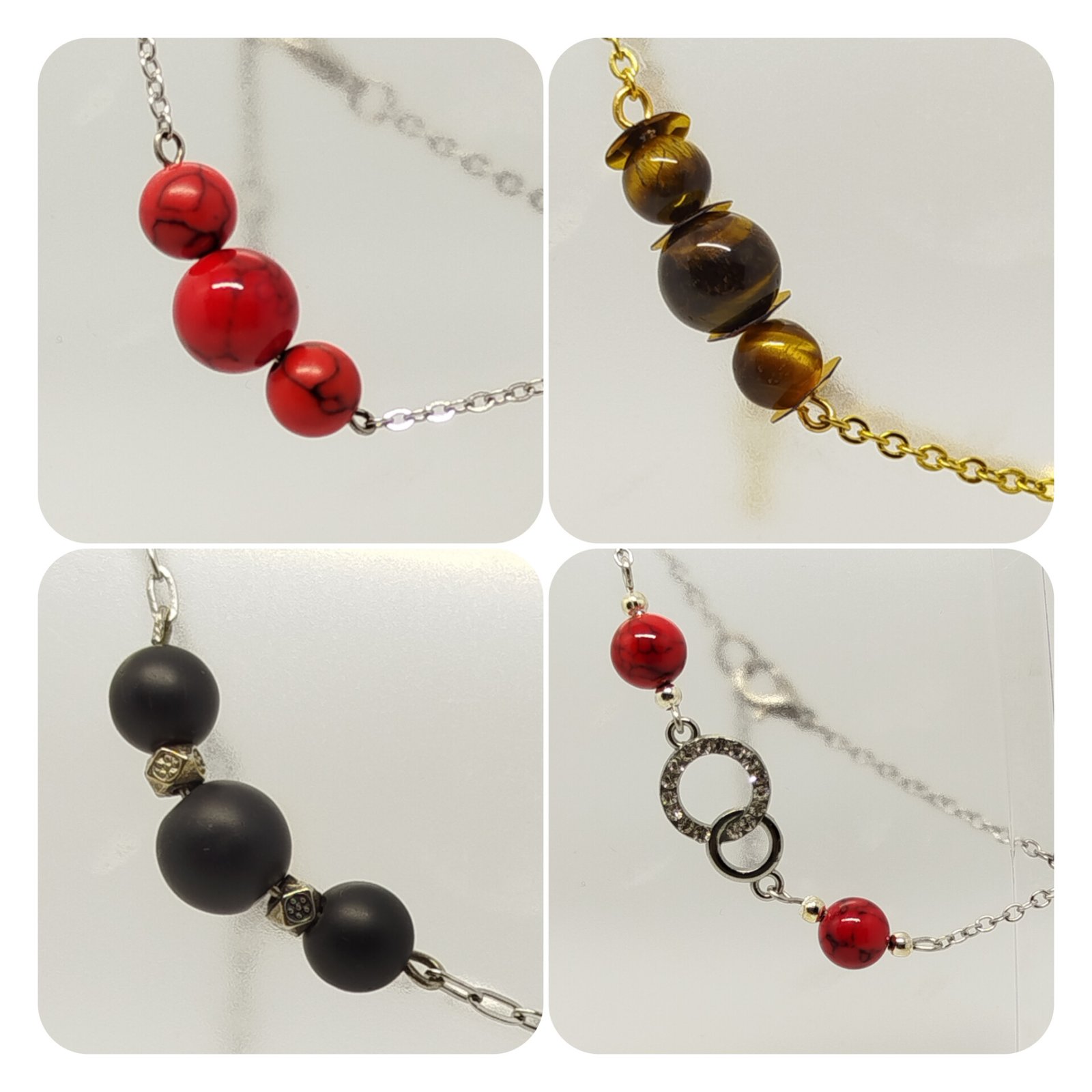 | Modèle | Howlite Rouge, Quartz Rose/Améthyste, Howlite Rouge/Strass, Œil de Tigre, Onyx |