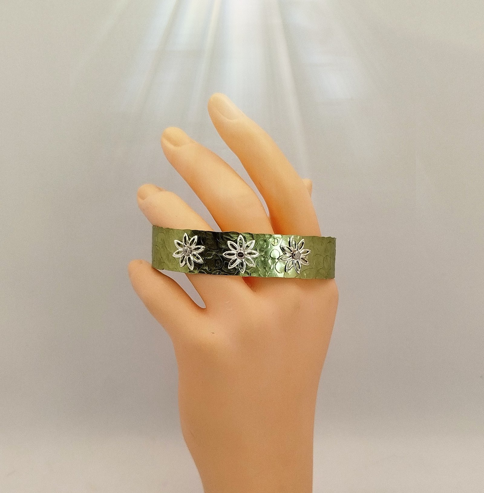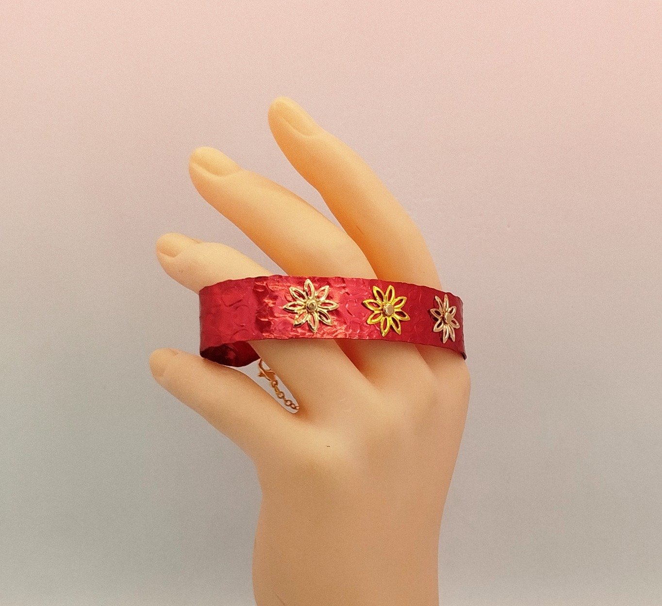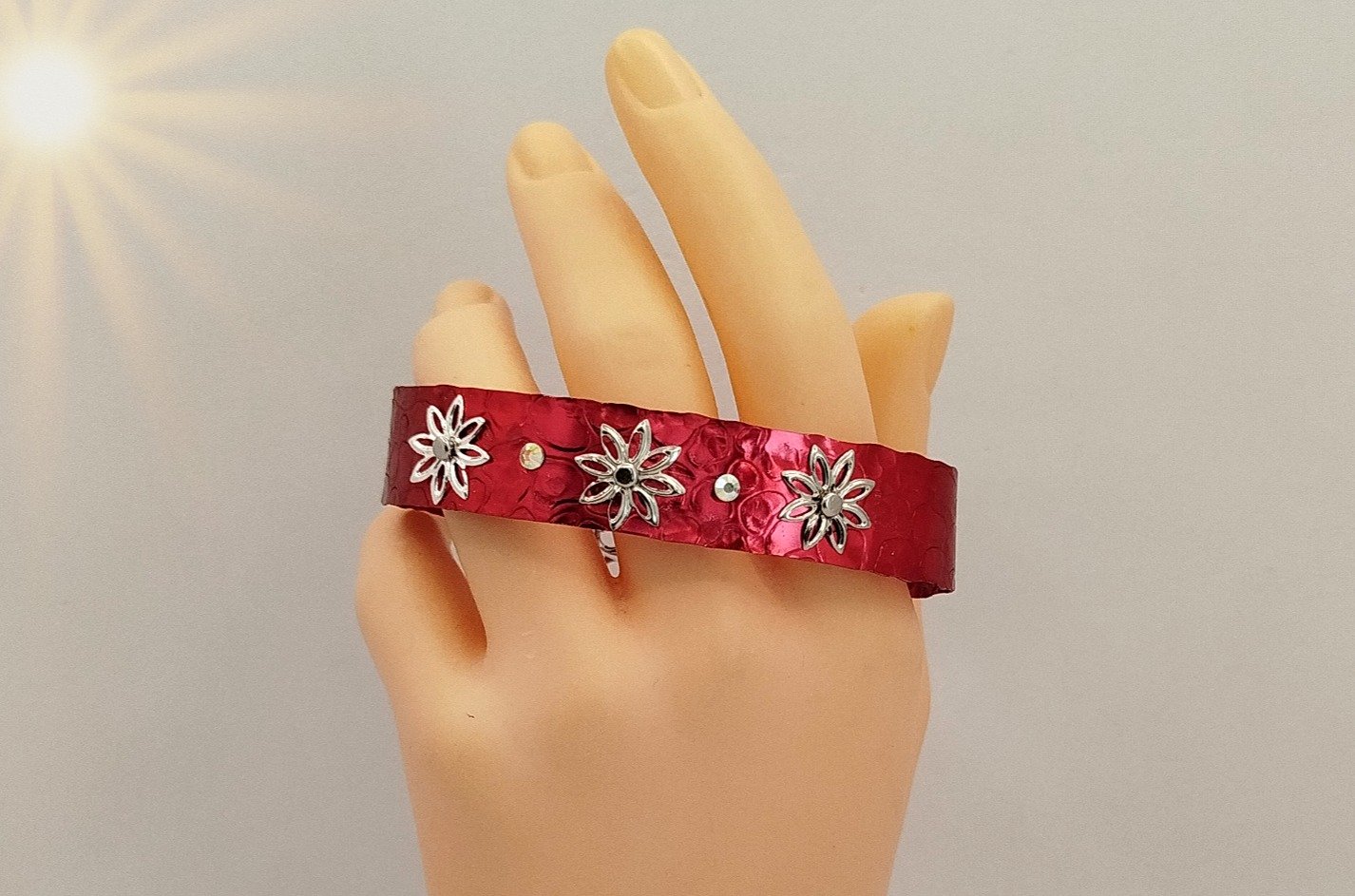 Ces bracelets larges en aluminium ne sont pas seulement un accessoire; ils sont une déclaration. Offrez-les en cadeau ou faites-vous plaisir en ajoutant cette touche d’originalité et de style à votre collection de bijoux. Leur finition soigneusement martelée, leurs ornements floraux ou leurs strass captiveront les regards tout en mettant élégamment en valeur vos poignets.