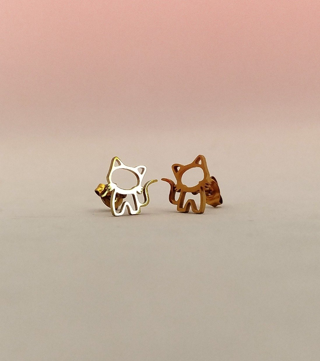 Clous d’Oreilles en Acier Inoxydable – Petit Chat