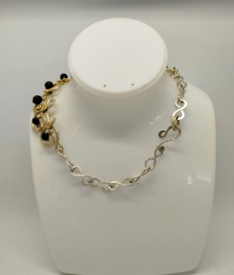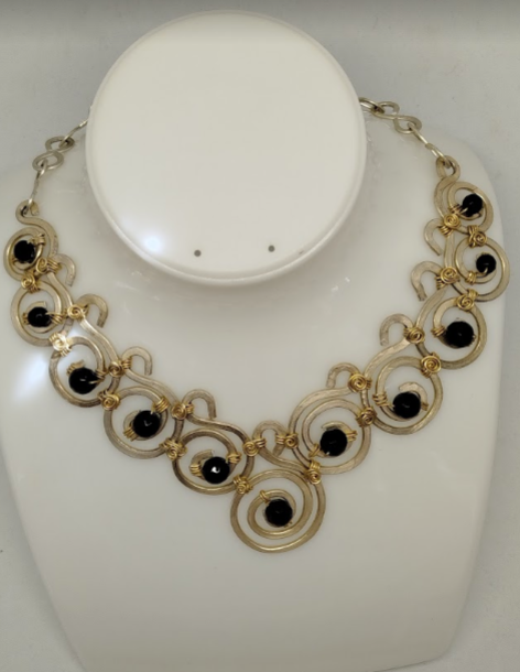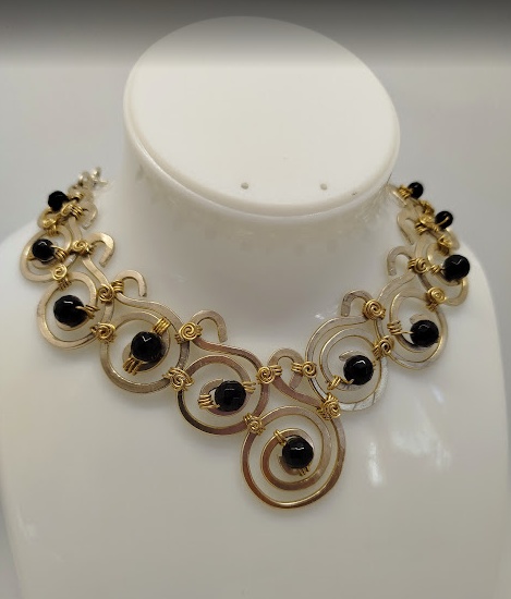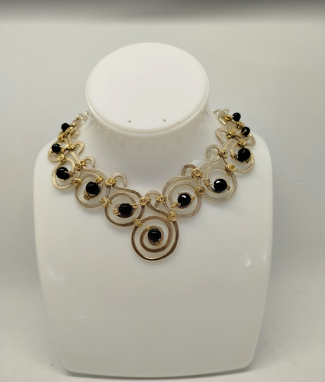 Collier Artisanal En Fil Aluminium Doré Avec Pierres Naturelles Onyx