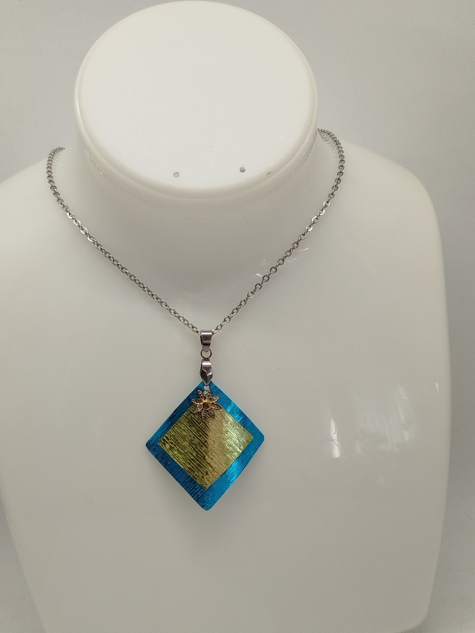 Ce collier en acier avec pendentif turquoise et vert pomme allie confort, durabilité et élégance. Son fermoir mousqueton pratique et sa conception intemporelle en font un accessoire idéal au quotidien ou à offrir.