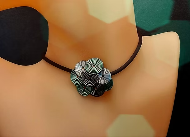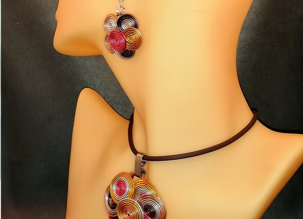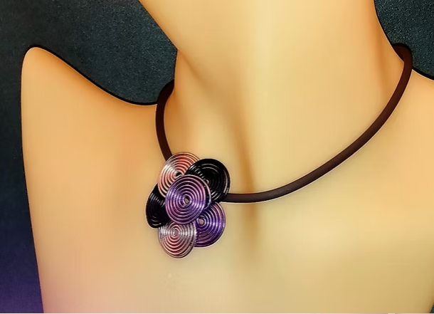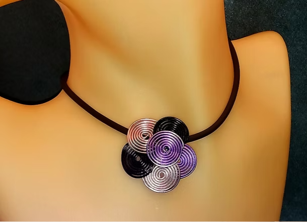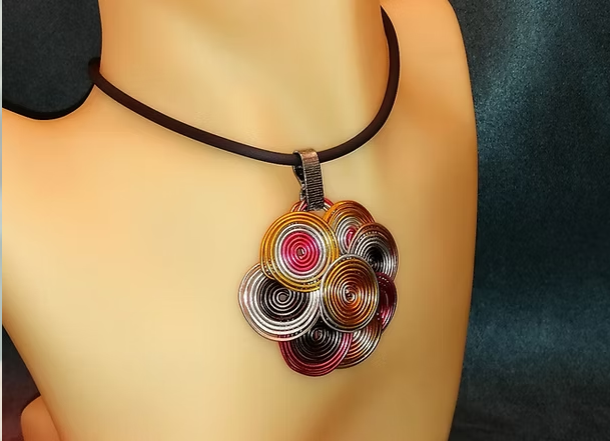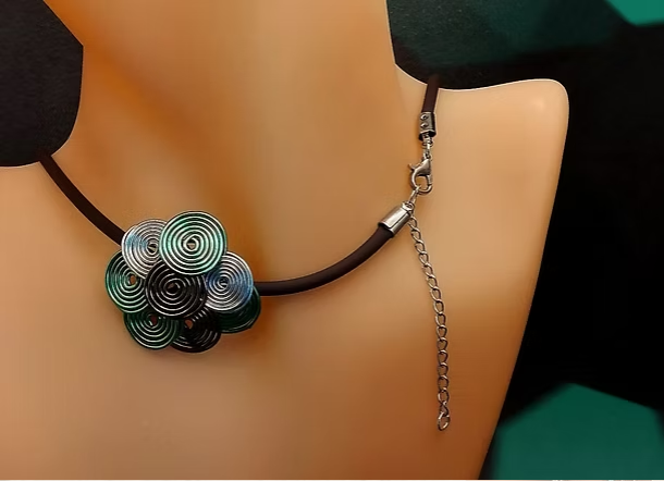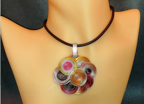 Ce magnifique collier est conçu pour sublimer votre style et attirer tous les regards. Le pendentif, d’un diamètre de 3,5 cm, est constitué de fil aluminium délicatement façonné en quatre couleurs différentes, apportant une touche originale et unique. Sa légèreté exceptionnelle vous offre un confort optimal tout au long de la journée, faisant de ce collier un accessoire idéal pour toute occasion.