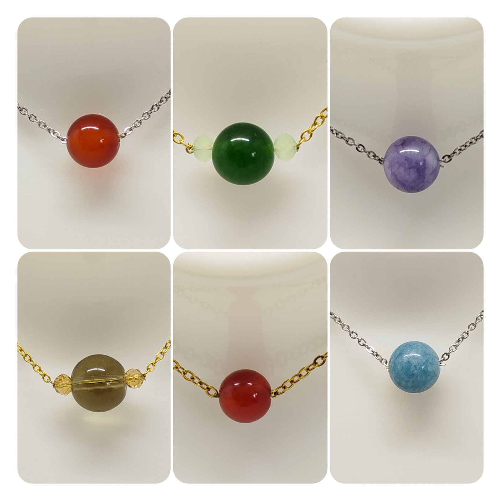 | Modèle | Calcédoine, Cornaline1, Quartz noir, Jade, Angélite, Cornaline2 |