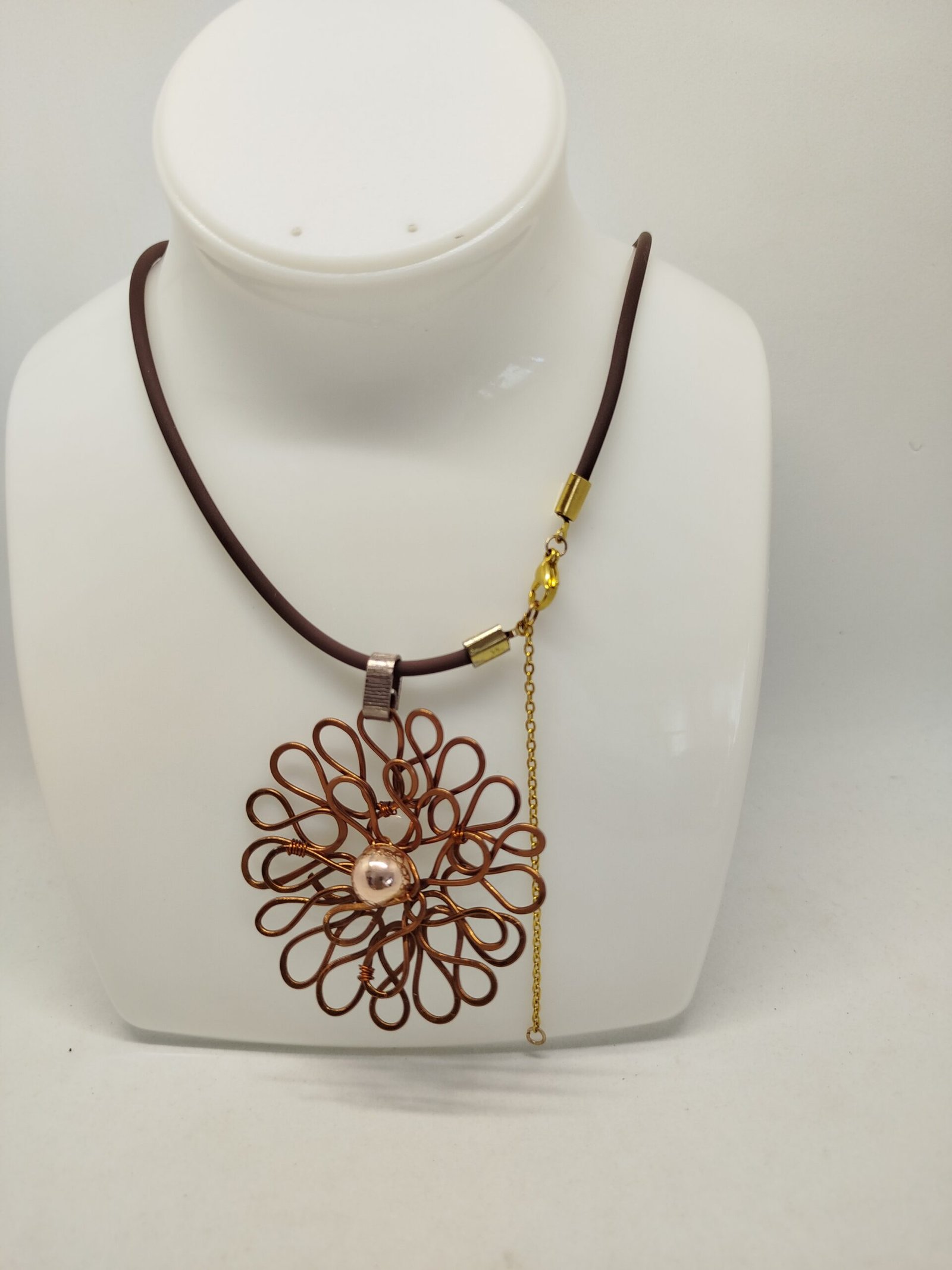 Découvrez le Collier Gigantesque Moderne et Romantique, une pièce sublime conçue pour attirer tous les regards. Le pendentif innovant de 7 cm est magnifiquement façonné en forme de fleur avec des pétales réalisées à partir de fil aluminium. Ce travail artisanal précis offre un effet éclatant, parfait pour ajouter une touche personnalisée à votre tenue. Au centre de cette fleur magnifique se trouve une pierre naturelle hématite dorée, apportant une aura de sophistication et de charme romantique à ce bijou moderne.