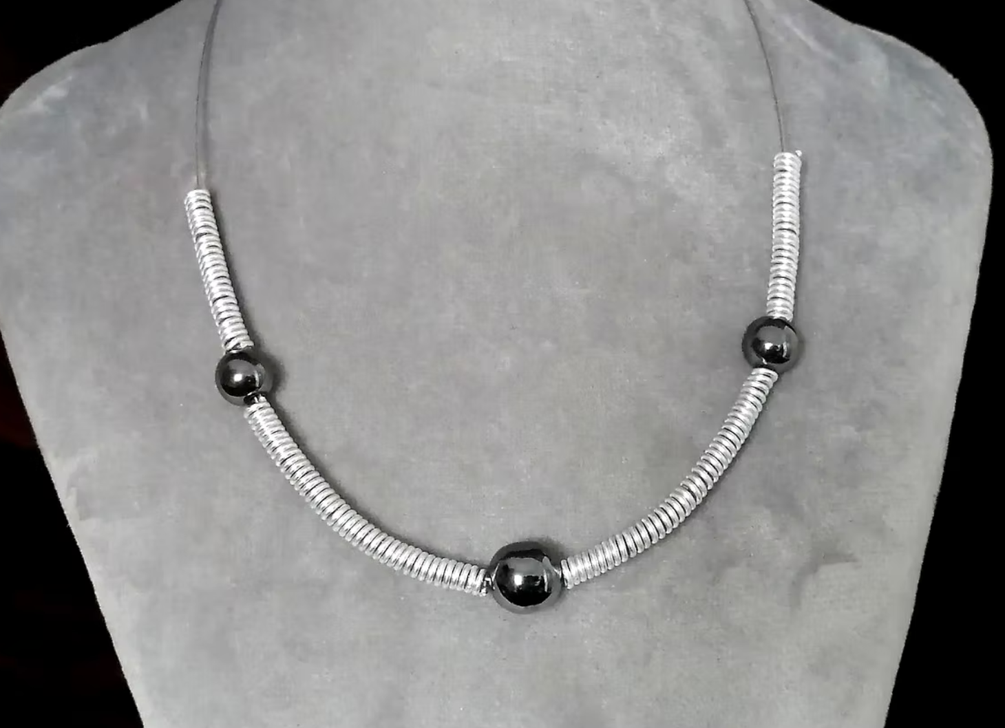Ce collier ras du cou est fabriqué avec des magnifiques pierres naturelles qui confèrent une beauté intemporelle et une connexion subtile avec la nature. Ces pierres, associées aux spirales en fil d’aluminium finement travaillé, créent un contraste harmonieux sur le câble à bijoux argenté. Leur agencement artisanal donne au collier une allure contemporaine et faite-main, rendant chaque pièce spéciale et authentique.