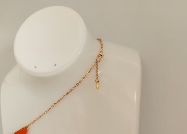 Nous fixons le collier sur une base en acier doré, alliant durabilité et élégance. Le fermoir mousqueton garantit une attache sécurisée et pratique. Avec une longueur de 42 cm, il repose délicatement autour de votre cou, offrant confort et style en toutes circonstances. Nous concevons chaque pièce pour qu’elle soit unique, faisant de cet accessoire un incontournable pour les amateurs de bijoux authentiques