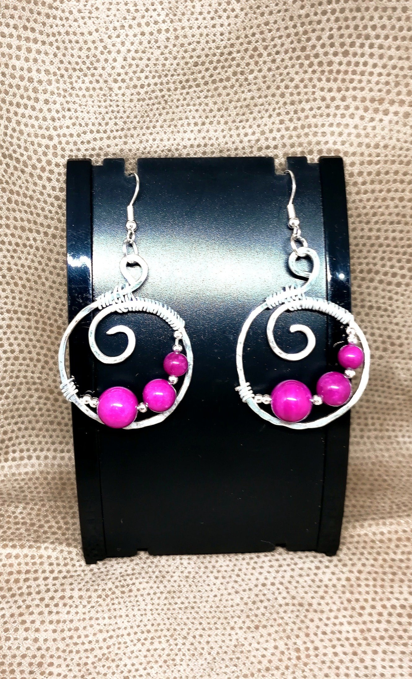 Le fil d’aluminium argenté durable et léger assure que ces boucles d’oreilles restent confortables à porter tout au long de la journée. Mais ce n’est pas tout : chaque paire est sublimée par de magnifiques pierres naturelles de Sugilite, connues pour leur couleur éclatante. D’un diamètre de 3 cm, elles offrent un équilibre idéal entre discrétion et présence.