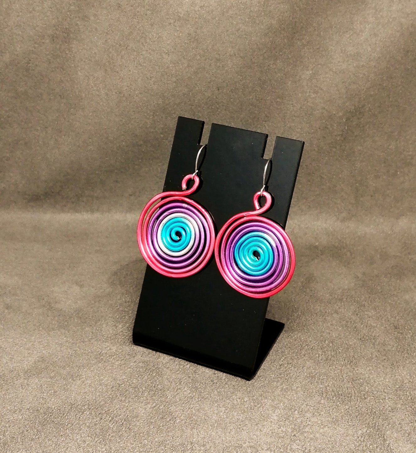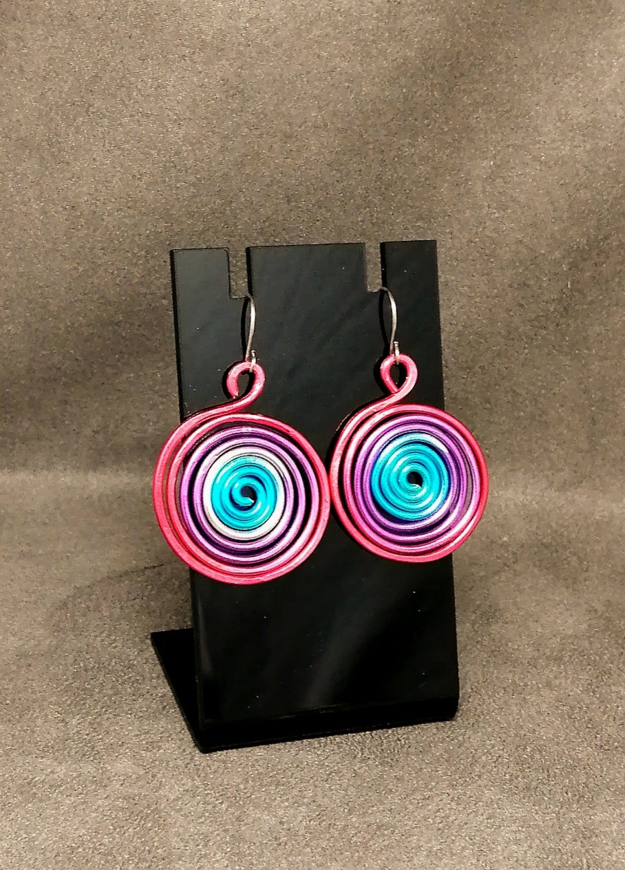 Sublimez votre style avec ces créoles en fil d’aluminium multicolore en spirales, confectionnées à la main. Audacieuses et élégantes, elles sont parfaites pour toutes les occasions.