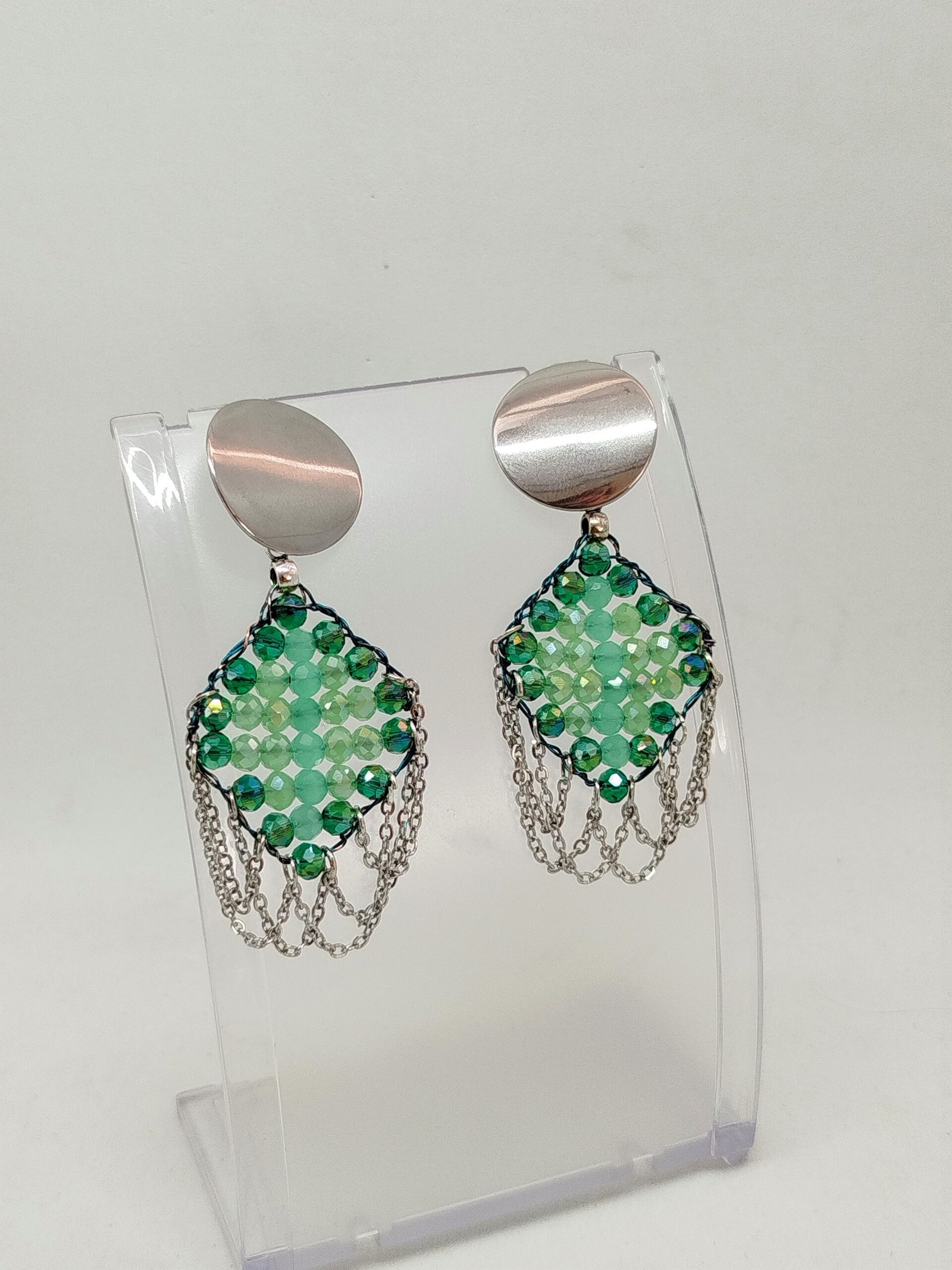 Fabriquées avec soin, ces boucles d’oreilles mettent en avant des perles à facettes vertes qui captent la lumière pour créer un éclat scintillant. Les petites chaînes argentées, soigneusement attachées, offrent un effet gracieux dans leurs mouvements. Les clous d’oreilles en acier inoxydable garantissent une tenue sécurisée tout en assurant une longue durée de vie. Ce choix de matériaux assure non seulement une esthétique impressionnante mais également une résistance aux éléments quotidiens.