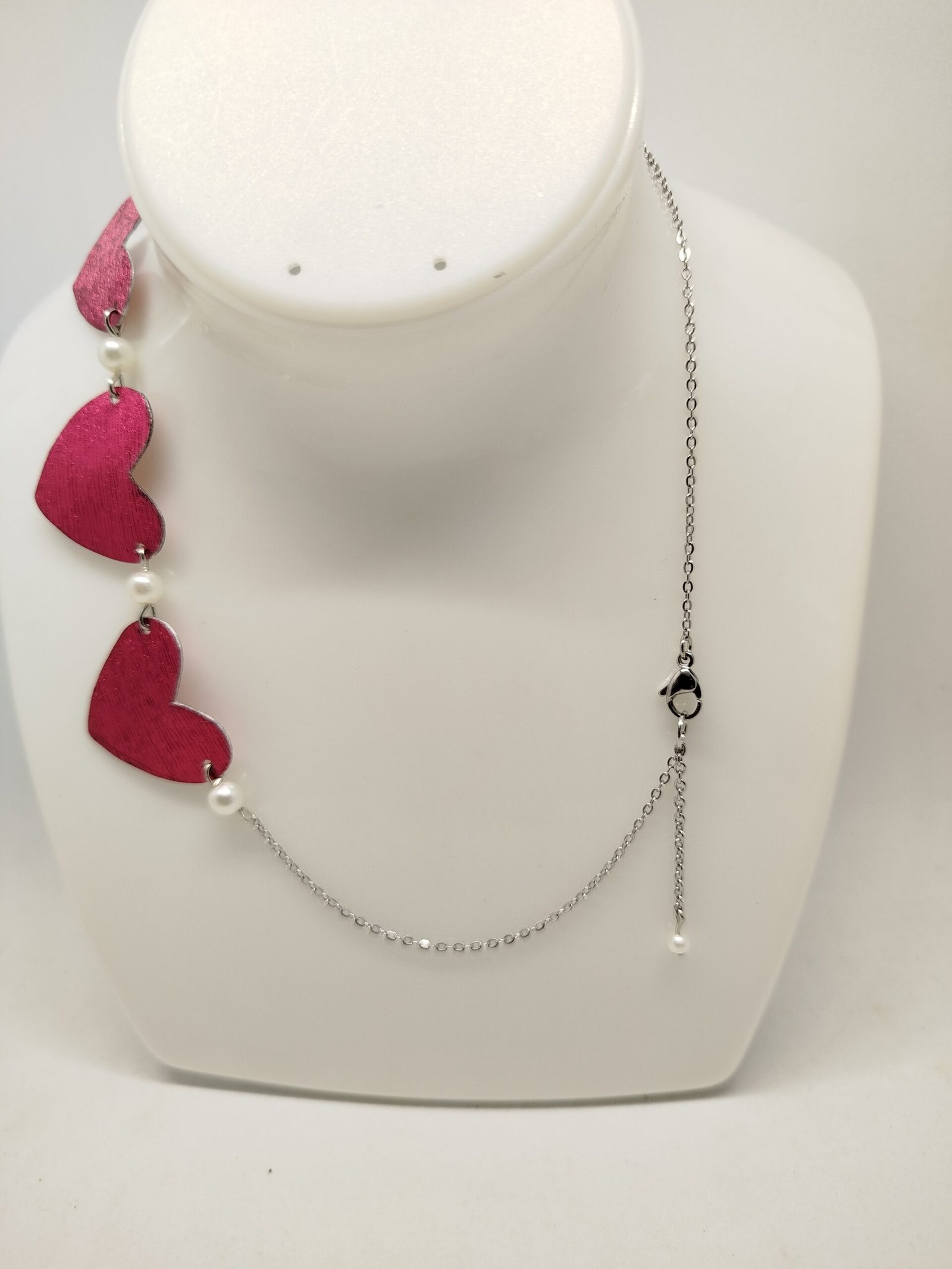 Le collier est monté sur une chaîne en acier inoxydable argenté, résistante, légère et agréable à porter. Son fermoir mousqueton assure une utilisation pratique et sécurisée. L’ensemble Cœurs Rouge allie qualité, durabilité et élégance pour un bijou intemporel, facile à assortir.