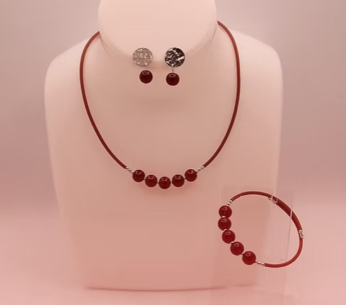 Offrez-vous un bijou intemporel qui allie raffinement et style. Cet ensemble composé d’un collier, d’un bracelet et de boucles d’oreilles est conçu pour sublimer votre look avec des pierres grenat d’une qualité remarquable. Le collier présente 5 magnifiques pierres grenat et se ferme facilement grâce à un petit fermoir aimanté. C’est l’accessoire parfait pour apporter une touche élégante à vos tenues, que ce soit pour une occasion spéciale ou pour un usage quotidien.