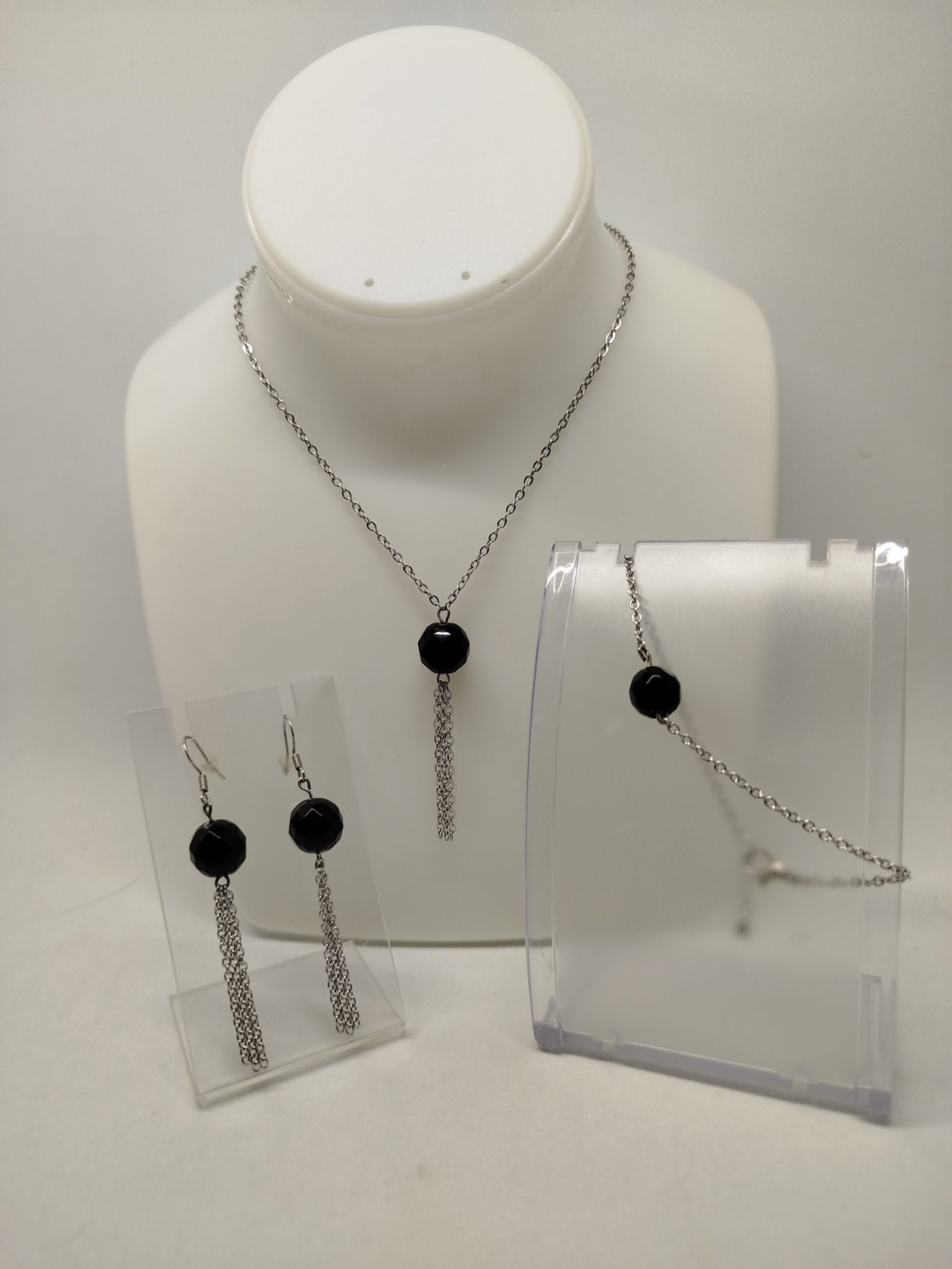 Pour les occasions spéciales ou pour ajouter une touche d’élégance à votre quotidien, cet ensemble unique réalisé avec des pierres naturelles Onyx à facettes de 12 mm est un véritable atout. Composé d’un collier, d’un bracelet et de boucles d’oreilles, il associe la beauté intemporelle de l’Onyx à des morceaux de chaîne en acier inoxydable argenté. Chaque élément est conçu pour rehausser votre allure et valoriser votre style.
