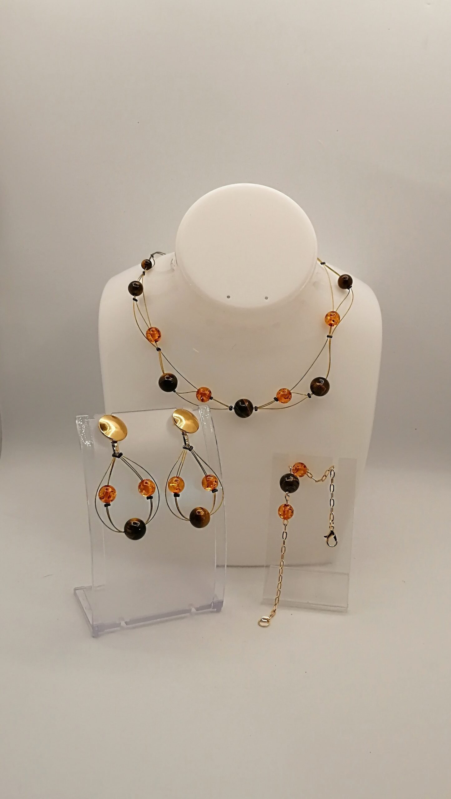 Ensemble en Pierre Naturelle Œil de Tigre et Ambre