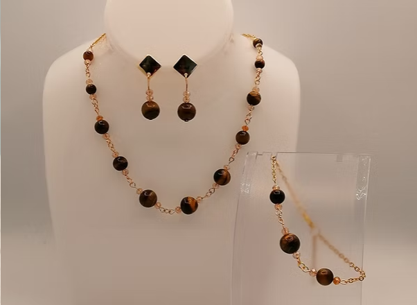 Ce superbe ensemble bijouterie, mêlant pierres naturelles Œil de Tigre et perles élégantes, allie style moderne et beauté intemporelle. Parfait pour un cadeau mémorable ou pour se faire plaisir. Ainsi, faites en sorte que chaque moment soit extraordinaire avec ce bijou délicatement conçu juste pour vous.