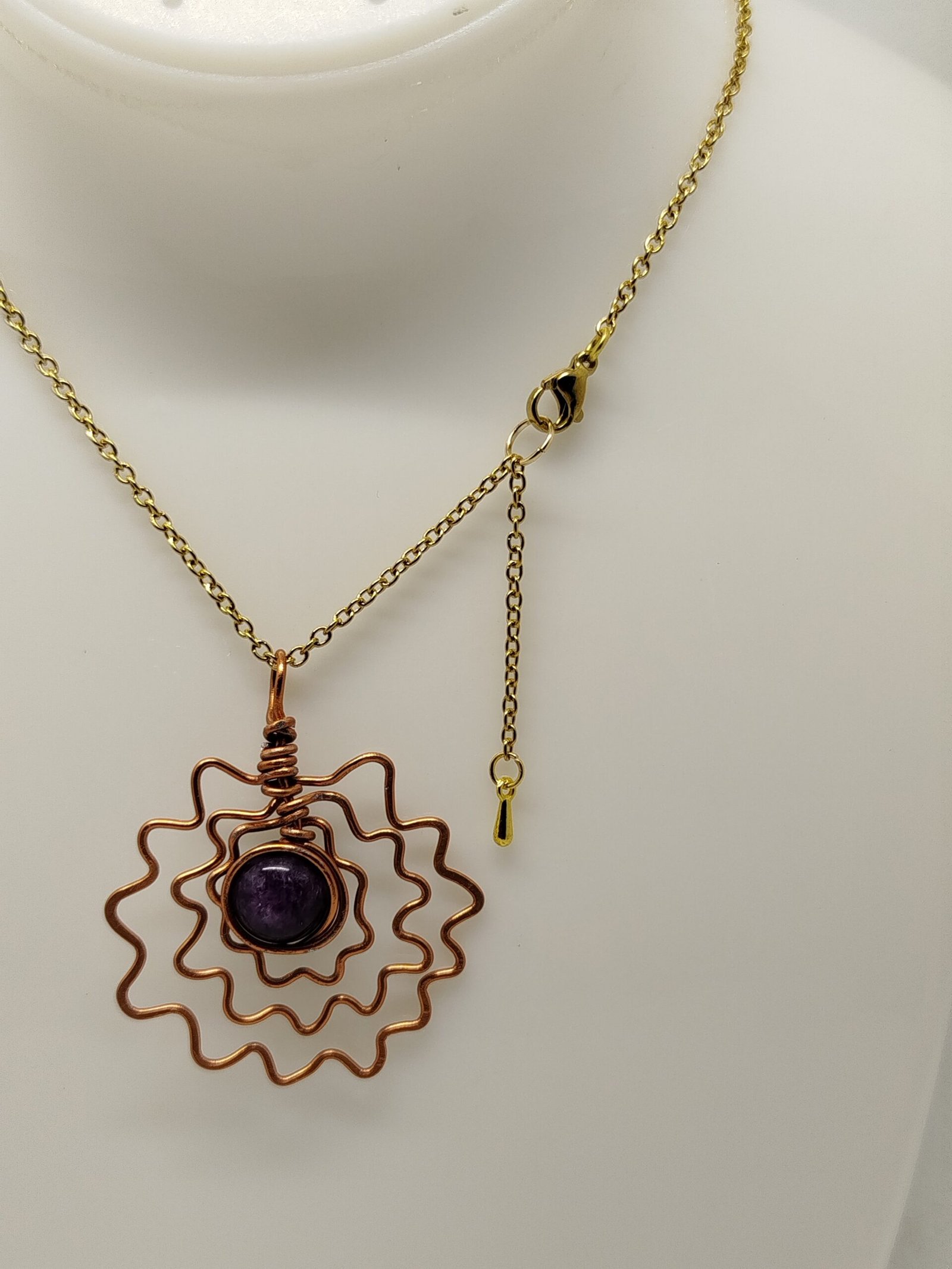 Pendentif en Fil d’Aluminium Avec Pierre Centrale