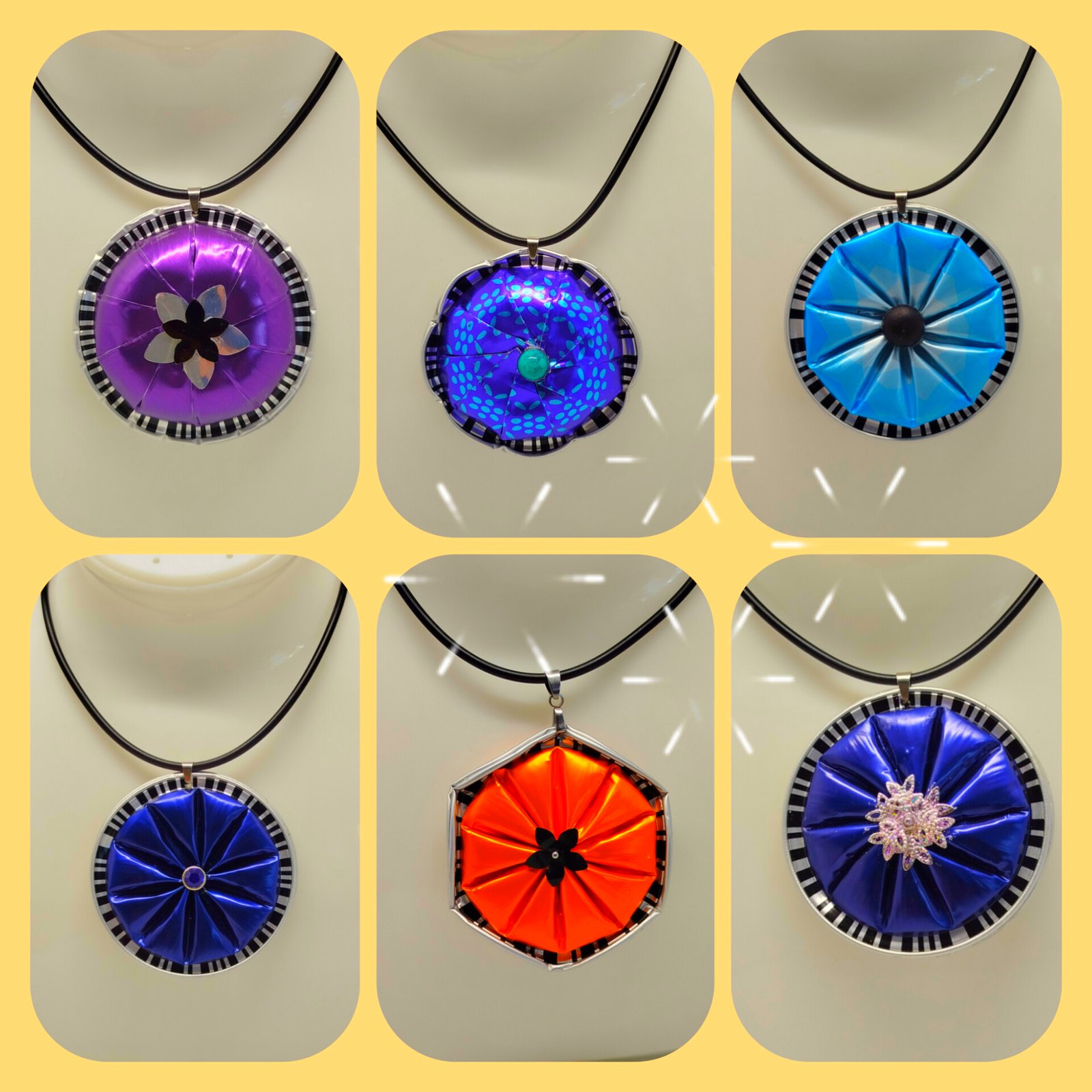 Ces pendentifs recyclés sont parfaits pour les amateurs de créativité et d’écologie. Ils allient style, originalité et engagement responsable, ajoutant une touche personnelle à votre look.