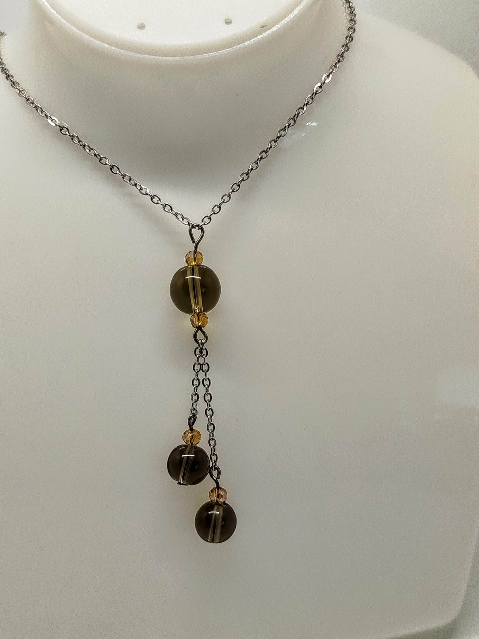 La pièce maîtresse de cet ensemble est le collier chaîne en acier argenté, qui apporte une robustesse et une durabilité remarquables. Le bracelet et les boucles d’oreilles en quartz noir fumé incarnent un équilibre parfait entre simplicité et éclat. Les pierres naturelles offrent une profondeur de couleur unique et un caractère distinctif, toujours en harmonie avec le collier. Chaque élément est soigneusement sélectionné pour garantir des finitions impeccables et un confort optimal.
