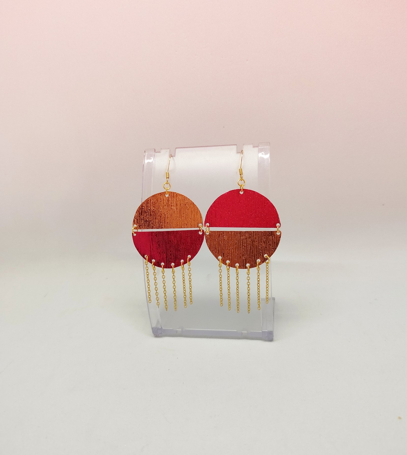 Chaque boucle d’oreille est soigneusement confectionnée en fil d’aluminium plat strié de deux couleurs, offrant une combinaison harmonieuse et moderne. L’aluminium utilisé est non seulement léger mais également durable pour assurer un port agréable tout au long de la journée. La technique de striage ajoute une texture distincte qui différencie ces boucles d’oreilles des modèles classiques et intemporels.